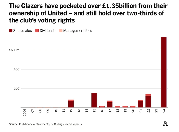 • £169,7 млн — в виде дивидендов, из которых £128,7 млн ушло самой семье Глейзеров;