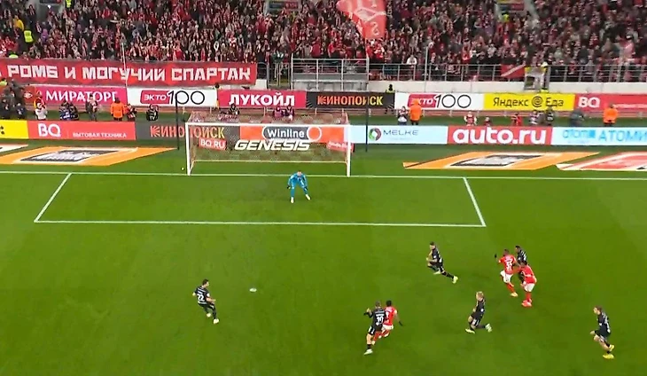 Спартаковец уже был на ударной позиции, но Обляков его вот так накрыл.