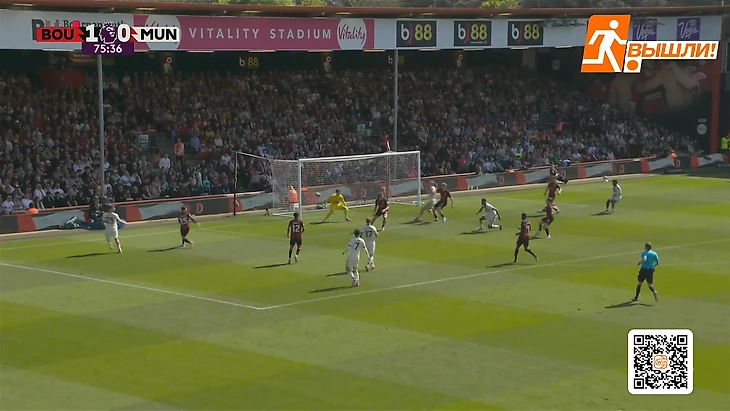 Второй тайм начался в похожем ключе: активное давление «Борнмута», доставка в штрафную через левый фланг, активный отбор в высоком блоке. На исходе первого 15-минутного отрезка едва не забили второй – гостей спасла крестовина.