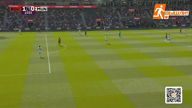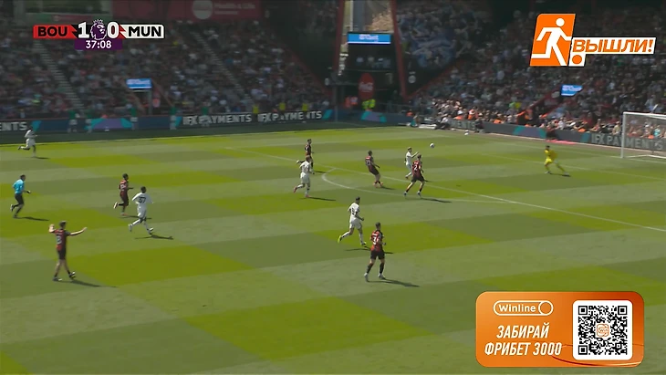 «МЮ» довольно быстро перешел на доставку мяча на половину поля хозяев длинными передачами, в фазе владения тоде пытались растянуть «Борнмут». Когда это получалось, мелко комбинировали в зонах левого фланга / полуфланга – в одном из моментов свой фирменный заход начал Майну, но исполнил в руки Кепе.