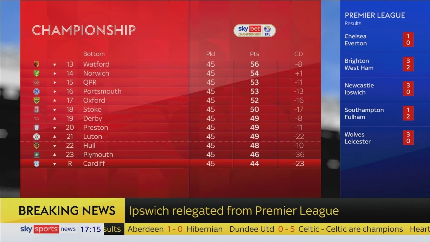 «Кардифф» ушел в Лигу 1 первым, но если бы они все же победили «Оксфорд» в пасхальный понедельник, они бы все еще оставались в борьбе. «Плимут» тоже вылетел, потому что не существует способа, которым они могли бы отыграть разницу мячей, которая на 18 голов хуже, чем у «Лутона». По какой-то причине William Hill все еще предлагает коэффициент на вылет «Аргайл» в размере 1/1000. Так что если вы хотите получить быстрый возврат в размере 0,1% от своих денег, то не стесняйтесь.