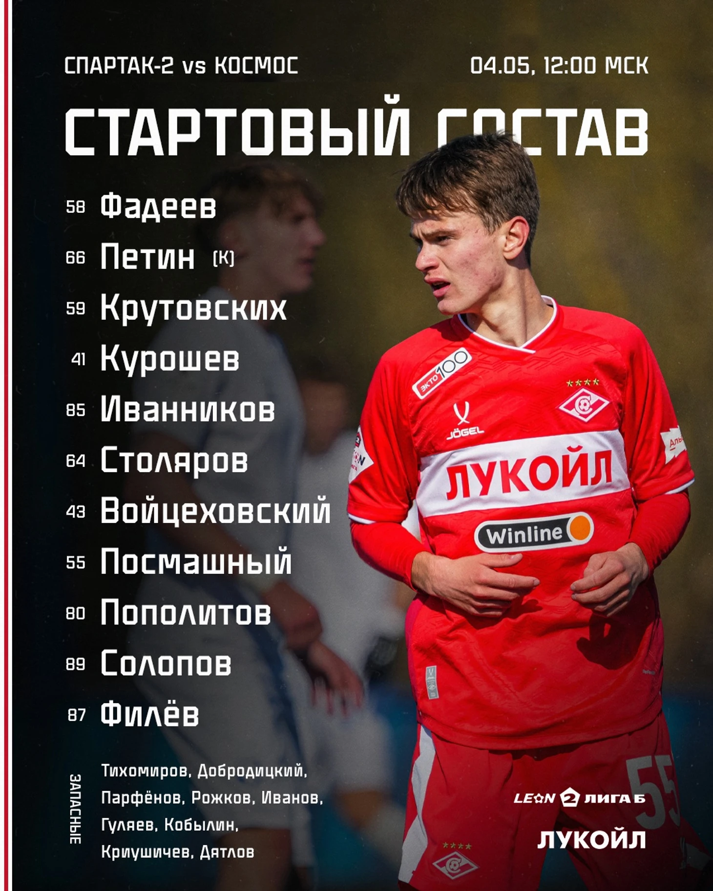 Состав. В старт «Спартака-2» вернулся Даниил Столяров, пропустивший игру предыдущего тура в Вологде.