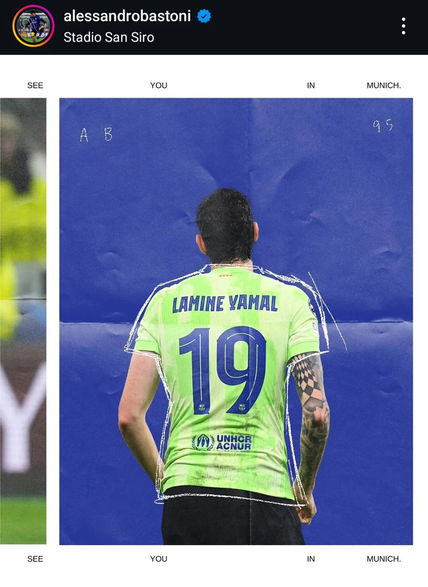 После ответной игры Алессандро Бастони выложил фотографию, на которой у его ног от боли корчится Ламин Ямаль – пост лайкнули Джуд Беллингем и Серхио Рамос. При этом защитник «Интера» из всех игроков «блауграны» для обмена футболками выбрал именно юного каталонца.