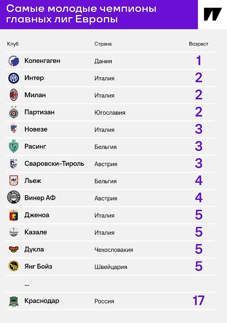 Самые молодые чемпионы европейских лиг: «Интер» и «Милан» в топе, но впереди всех «Копенгаген» – хватило одного сезона