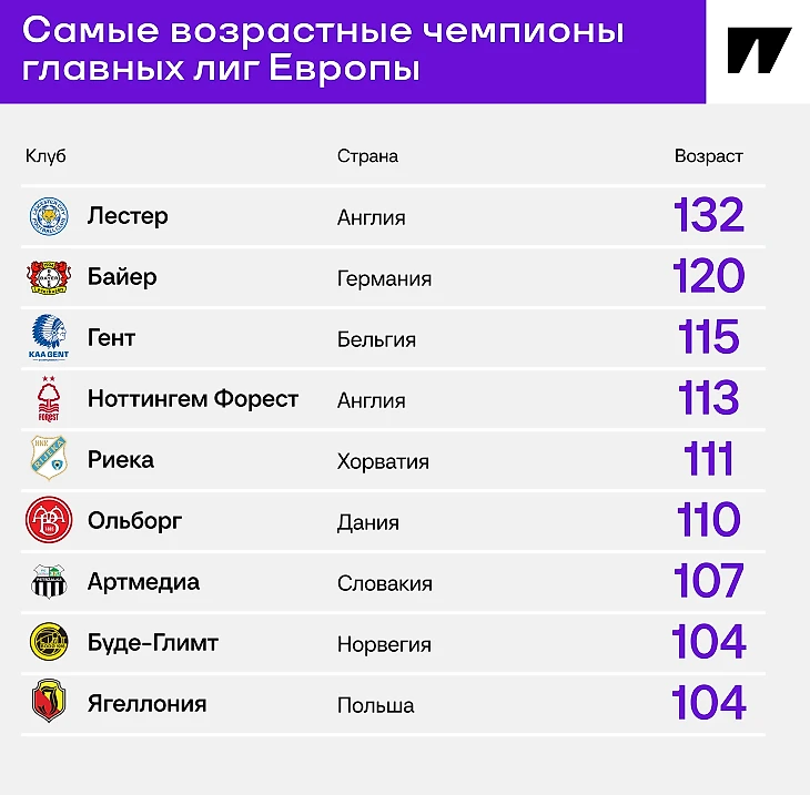 Исследование возраста клубов Европы: какая лига – старейшая, какая самая молодая и где РПЛ?