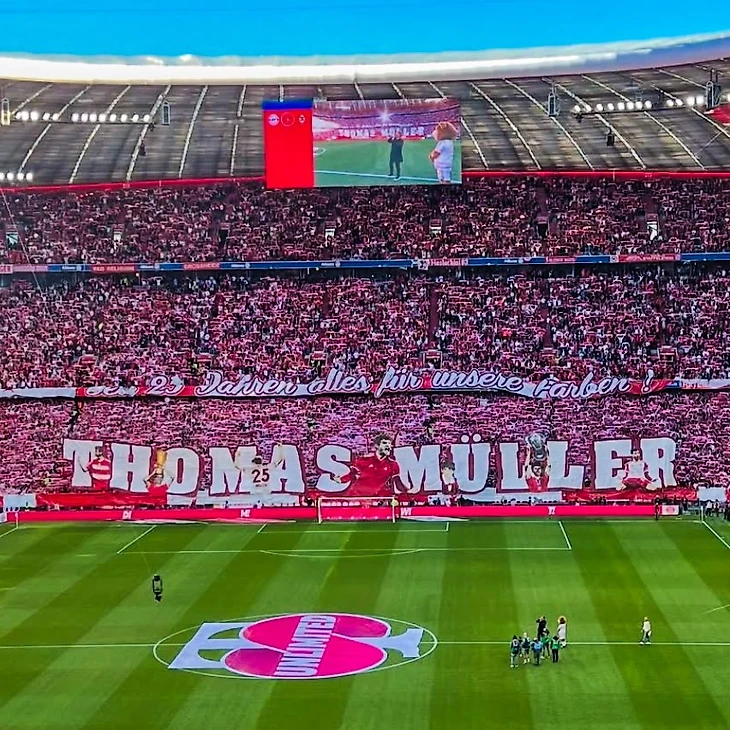 📸 Фанаты «Баварии» сделали роскошный перфоманс на последний домашний матч Мюллера. Реакция Томаса – восторг ❤️