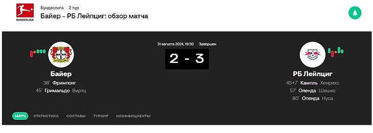 Лучшую игру в жизни показали крайние защитники Леверкузена Гримальдо и Фримпонг, центральный защитник Одилон Коссуну.