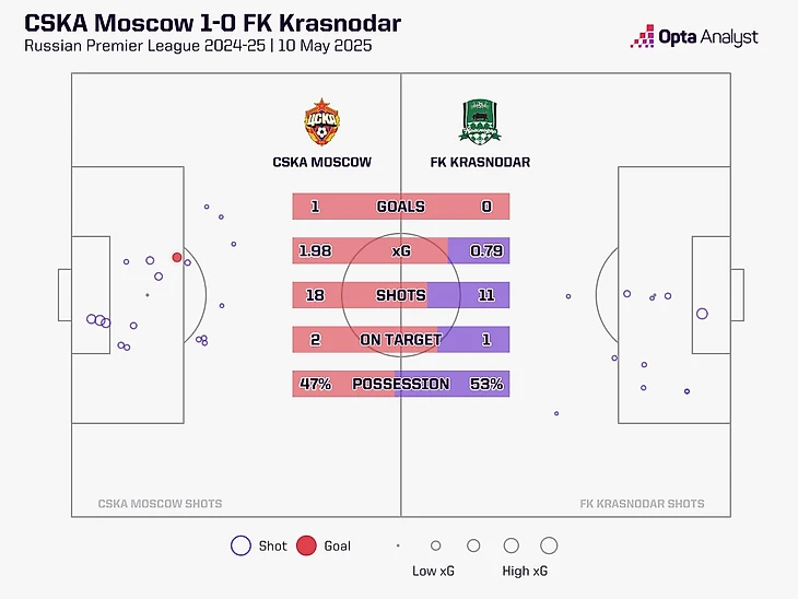 Перед вторым таймом ожидалось, что «Краснодар» усилит давление, но вместо этого произошёл полный провал. Как отметил Александр Дорский в своём Telegram-канале: «35 минут второго тайма - полный провал («Краснодара»). На этом отрезке ЦСКА нанёс 11 ударов, а «Краснодар» - лишь 1». Хуже было только в матче с «Зенитом».