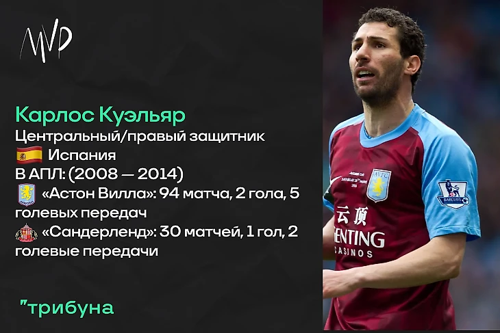 Трудно сказать, чем юному автору текста запомнился тогда Карлос Куэльяр. Быть может, своими габаритами или кудрявыми короткими волосами. А, быть может, и просто благодаря случайно брошенному взгляду на состав «Астон Виллы» в одном из матчей сезона 2009/10. Утверждать ничего не буду. Просто это был очень хороший защитник, с которым в составе клуб едва не заскочил в зону Лиги Чемпионов.