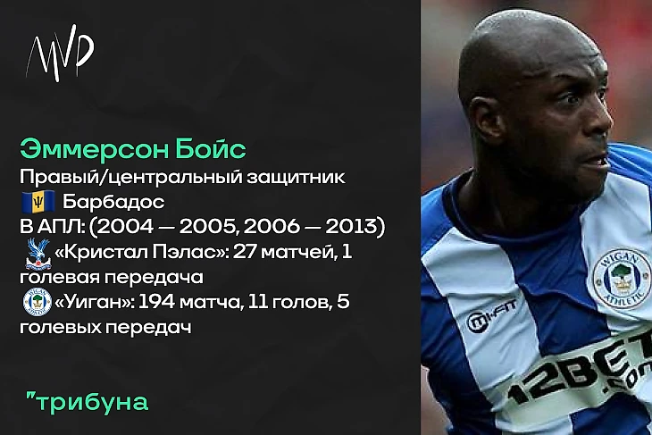 Прослеживается занимательная тенденция – в данные подборки попадает очень много футболистов с Карибских островов, да и из других стран Северной Америки. Но обойти стороной Эммерсона Бойса, представитель Барбадоса, я просто не имел права. Он родился в Англии и всю футбольную карьеру провел в этой стране. Начиналось в «Лутоне», потом был трехгодичный период в «Кристал Пэлас», включающий в себя даже один полный сезон в АПЛ – 2004/05. Первый блин на столь высоком уровне вышел комом и Бойс вместе со своей командой вылетел в Чемпионшип, хоть и отыграл в том первенстве большую часть поединков в основе. Но нам куда интереснее второй заход Эммерсона в Премьер Лигу.