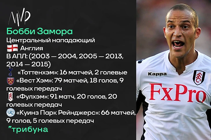 В конце десятых Замора выступал за «Фулхэм», рука об руку с уже упомянутым Дэмьеном Даффом. Как и у партнера по команде, сезон-2009/10 вышел у Бобби очень хорошим. Набрав тринадцать очков по системе гол+пас, англичанин затем еще два года не сбавлял планку и пробивал десять баллов результативности. К слову, в ту пору состоялся его дебют за основную сборную страны. В 2012 году уже немолодого Замору приобрел «КПР» – четвертый столичный клуб в карьере нападающего. И вот там уже он начал «затухать», забивая и играя все меньше.