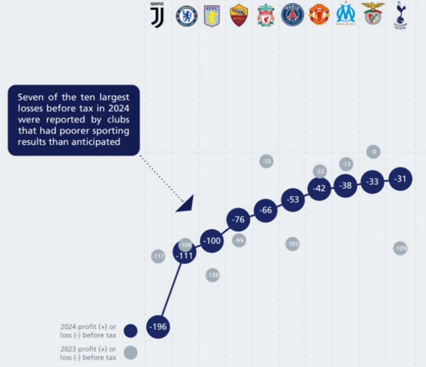 прибыль от продажи женской команды в пользу BlueCo составила 198,7 млн, но в своем отчете УЕФА не учитывает эту продажу. Без нее убыток до налогов составил бы 69,3 млн.