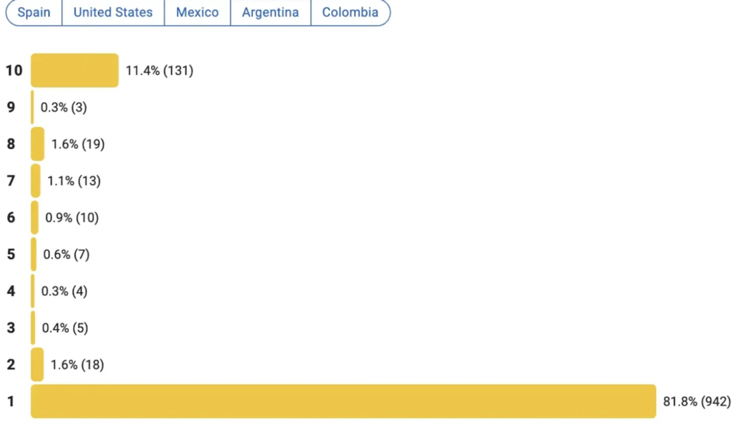 Посмотрите как его ненавидят свои же в Испании, больше половины голосов из Испании и 94 % это 1 или 2
