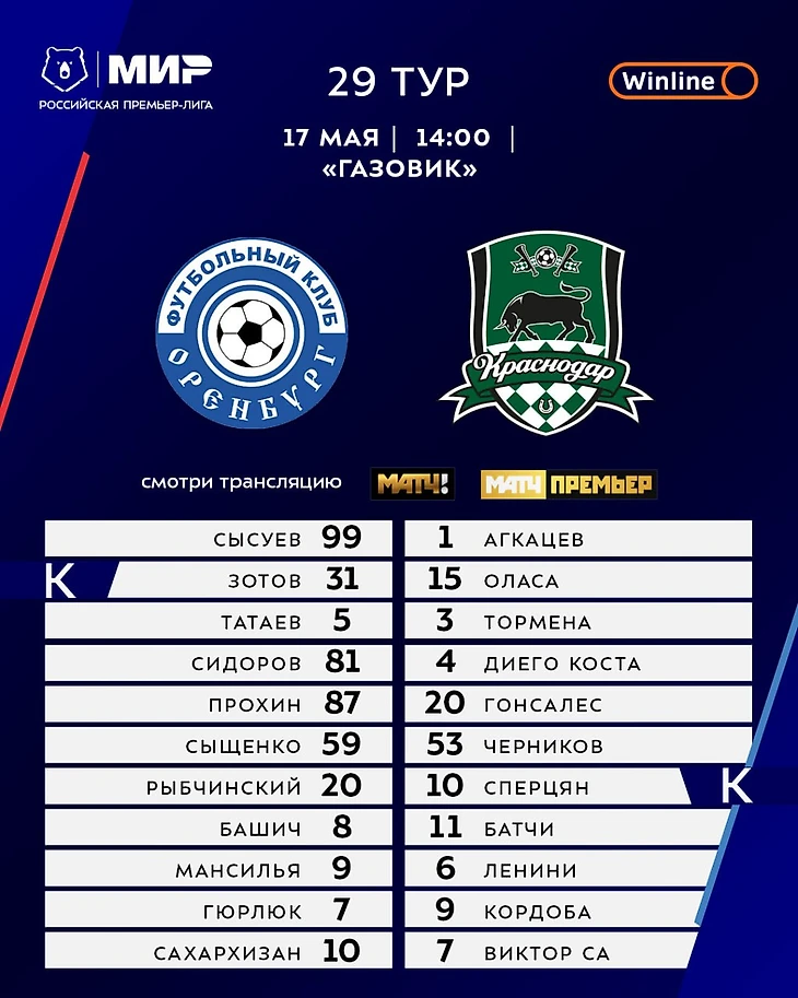 Обе команды выставили довольно предсказуемые составы. Краснодар наконец-то этой весной смог собрать оптимальный состав. Оренбург сделал ставку на фланговую игру, что было вполне логичным.