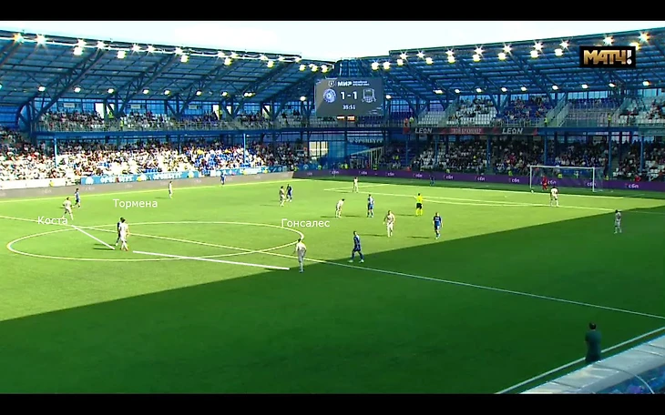 Возвращаясь к Гонсалесу: при атаках Краснодар оставлял в защите тройку (Коста — Тормена — Гонсалес). При повторном просмотре возникает вопрос: почему один из самых быстрых игроков не только не успевал за соперниками, но и постоянно ошибался? На 29-й минуте защитник Оренбурга Сыщенко совершил ошибку в передаче на Кордобу, и колумбиец сравнял счёт. После этого гола Краснодар перехватил инициативу, и у ворот Сысуева стали появляться опасные моменты.