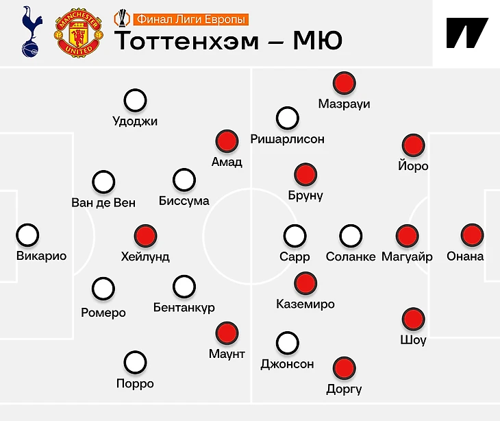 «Тоттенхэм» подходил к финалу без Джеймса Мэддисона, Деяна Кулусевски и ряда менее значимых игроков. Пограничный случай – Сон Хын Мин. Кореец восстановился после травмы и отыграл против «Астон Виллы» в пятницу, но, по словам Постекоглу, еще не готов на 100 процентов. Капитан «шпор» начал на скамейке, слева появился Ришарлисон.