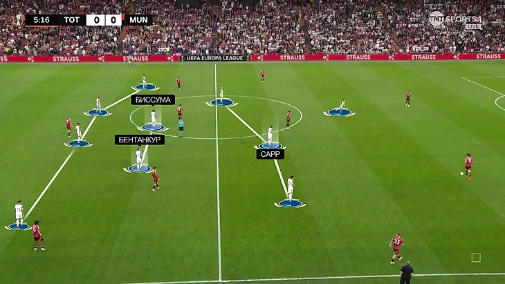 С учетом травм Мэддисона, Кулусевски и даже Лукаса Бергвалля «Тоттенхэм» остался без трех самых креативных полузащитников. Конфигурация Ив Биссума, Родриго Бентанкур, Пап Сарр – самое оборонительное трио Постекоглу. Этот вариант дает в первую очередь сдерживание соперника.