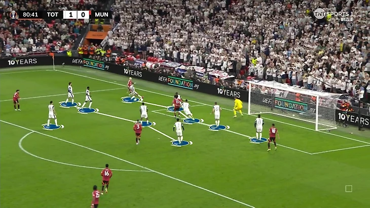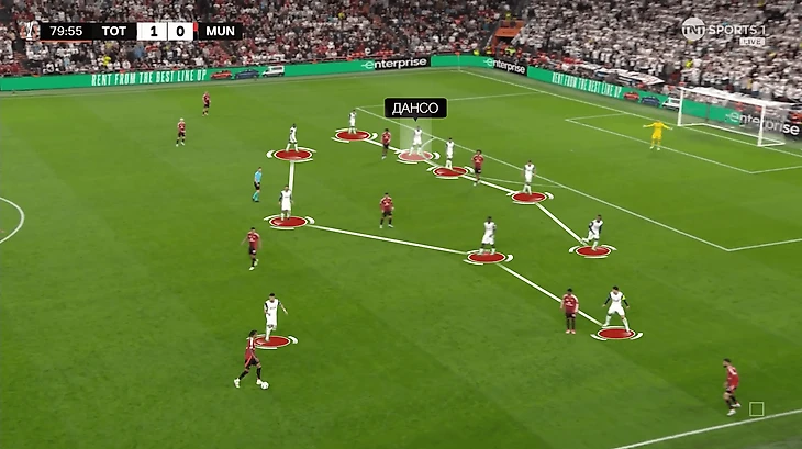 Во время финального штурма к Зиркзе и Магуайру присоединился Каземиро. «Юнайтед» окончательно перешел на бомбардировку навесами. С 75-й минуты – аж 14 подач. На этом отрезке решалось, какая пропорция дуэлей останется за командами. «Шпоры» оказались сильнее благодаря топовой игре тройки Дансо-Ромеро-Ван де Вен и поддержке партнеров.