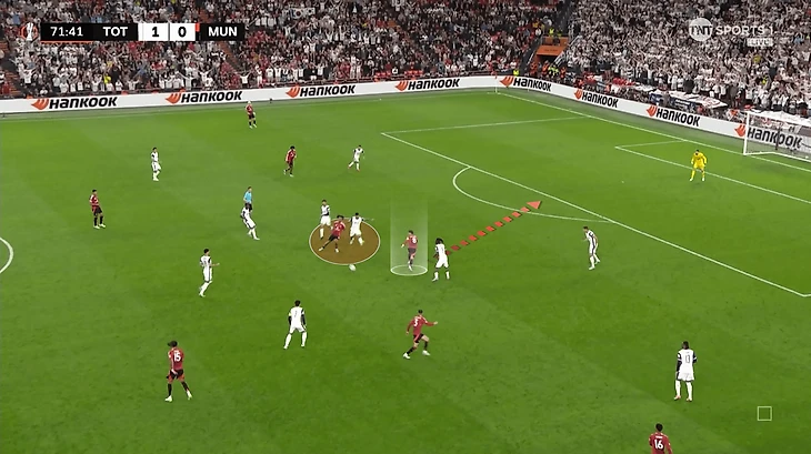Следствие такого рисунка – крайние защитники «Тоттенхэма» не в ложных, а в классических ролях. В типичном сценарии Педро Порро и Дестини Удоджи смещаются в середину и помогают с розыгрышами (уводят соперников или отыгрываются в пас). В этот раз строго огибали фланг. Прослеживалось даже перед голом, подтолкнувшим избегать рисков дополнительно. Точность передач фиксируют манеру. Порро не добрался даже до 50%, Удоджи еле перевалил за 60%.