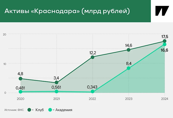 Годовые доходы академии «Краснодара» – 2,2 млрд рублей, общие активы – 16,6 млрд.