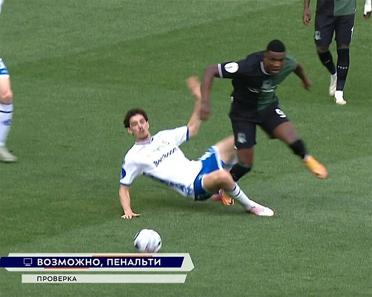 В итоге судье Артему Чистякову даже не пришлось идти к монитору, так как минимальный офсайд у Кордобы все же зафиксировали.