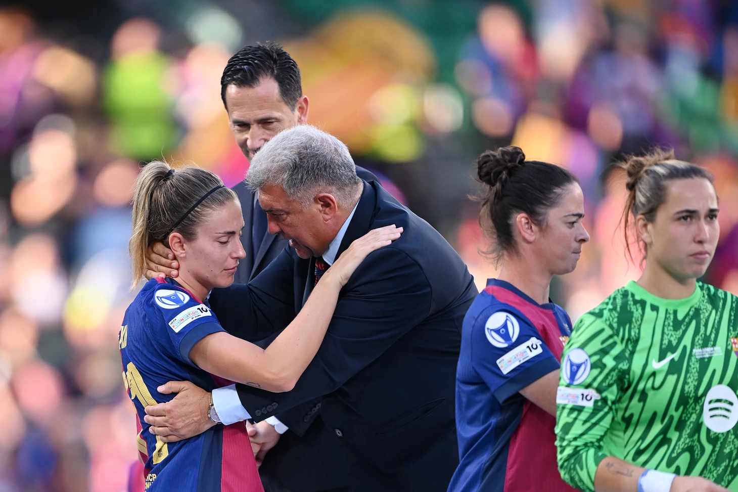 После поражения «Барсы» Лапорте все-таки хватило сил спуститься на награждение и утешить футболисток: