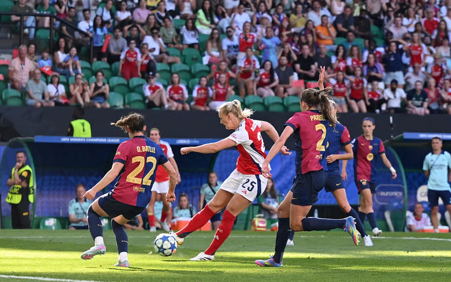 «Канониры» провели на старте несколько перспективных атак, одна из которых даже завершилась голом, а точнее автоголом: Ирене Паредес срезала прострел Фриды Монум в свои ворота. Однако ВАР не засчитал взятие ворот из-за офсайда у норвежки.