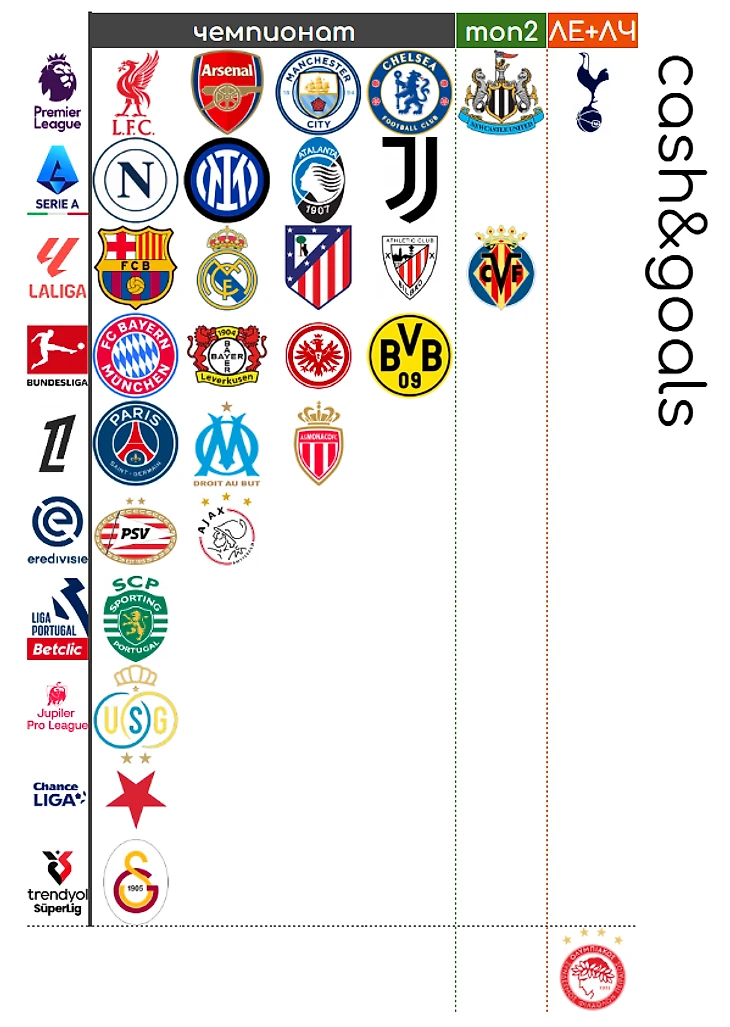 А вот финал Лиги чемпионов еще впереди. Но ПСЖ и Интер квалифицировались в турнир через национальные чемпионаты. В таком случае место в основном раунде Лиги чемпионов достается клубу, который стал чемпионом своей страны и имеет наивысший клубный рейтинг УЕФА (за исключением тех, кто уже отобрался в турнир). Повезло Олимпиакосу. Чемпион Греции занимает 37-ю строчку в клубном рейтинге УЕФА и это высший показатель среди неквалифицировавшихся чемпионов. Например, чемпион Норвегии Буде-Глимт 43-й в рейтинге.