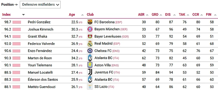 В последнем дайджесте CIES выкатил список самых влиятельных игроков мира, разделив их по позициям. Всех можно посмотреть по ссылке, а мы остановимся на десятке лучших. Оценивали их по шести категориям: воздушные дуэли и на земле, выбор позиции, отбор, создание моментов и завершение/реализация.