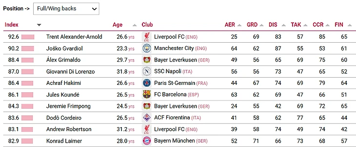 CIES составил список самых влиятельных игроков по позициям. Так выглядит топ-10 в каждой номинации