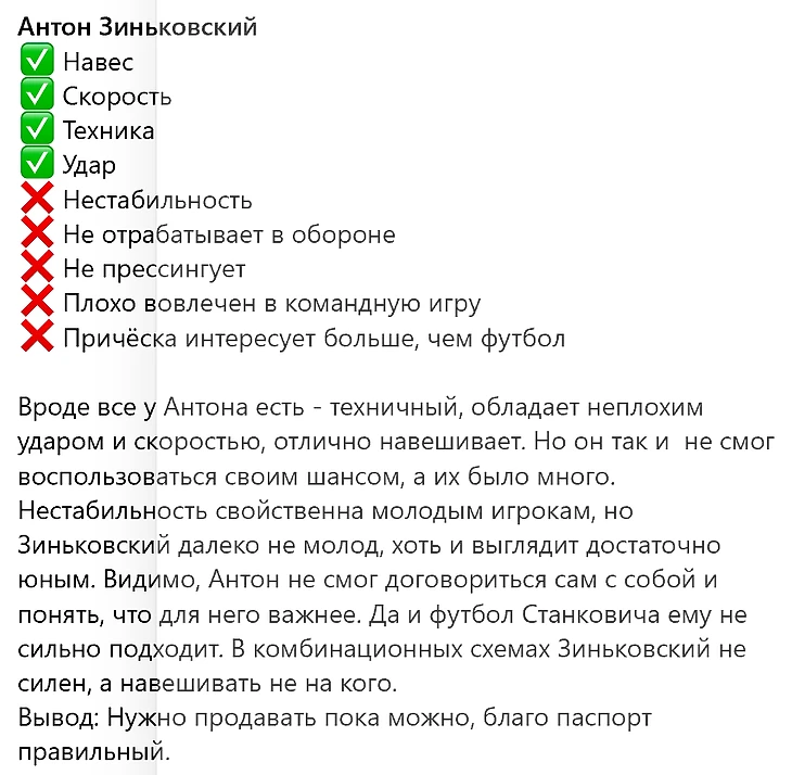 Начну рассуждения о нашем составе, с паспортистов. Я уже вкратце упоминал об этом после матча с Динамо, теперь давайте поговорим об этом подробно. Также оставлю ниже на каждого футболиста описание которое я приводил зимой. В большинстве случаев оценка осталось на том же уровне или ухудшилось, а вы для интереса можете сравнить.
