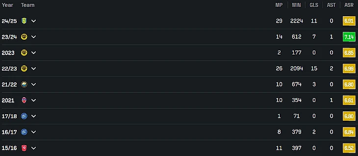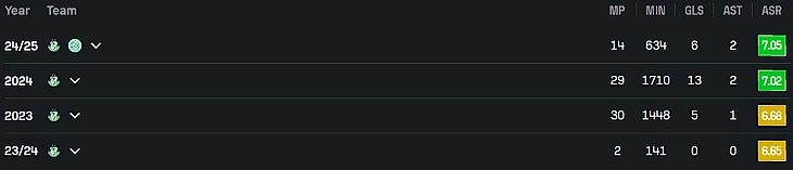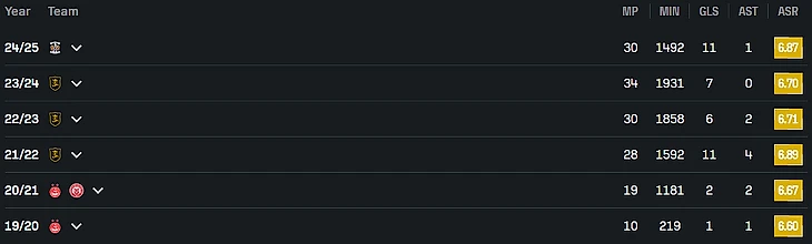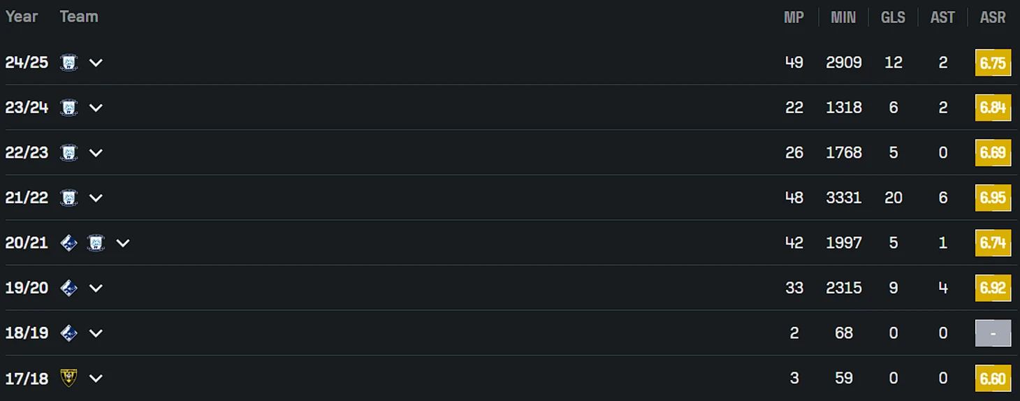 В одном из предыдущих абзацев я писал, что меня смущает возраст японского игрока Коя Юруки. Но зато есть нападающий Син Ямада, которому на днях исполнилось только 25. В 2024 он разразился 19 голами при 21 выходе в старте (2 000 минут) J-Лиги за «Кавасаки Фронтале». Ямада тогда уступил в чемпионате лишь всяким приглашенным бразильцам, но смущает, что сезон 2025 он проводит уже не так результативно.