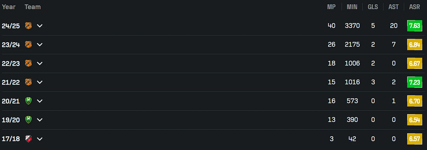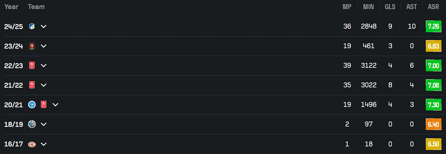 Более умеренный сезон получился у Гиана де Регта в «Витессе», поэтому его в Эредивизи никто не вытаскивал. После 4 + 7 при 26 выходах в старте и без промоушена он стал свободным агентом, поэтому может самостоятельно определяться со своим будущим. Между прочим, у него обе ноги рабочие, поэтому приносить пользу он способен как на левом, так и на правом краю.