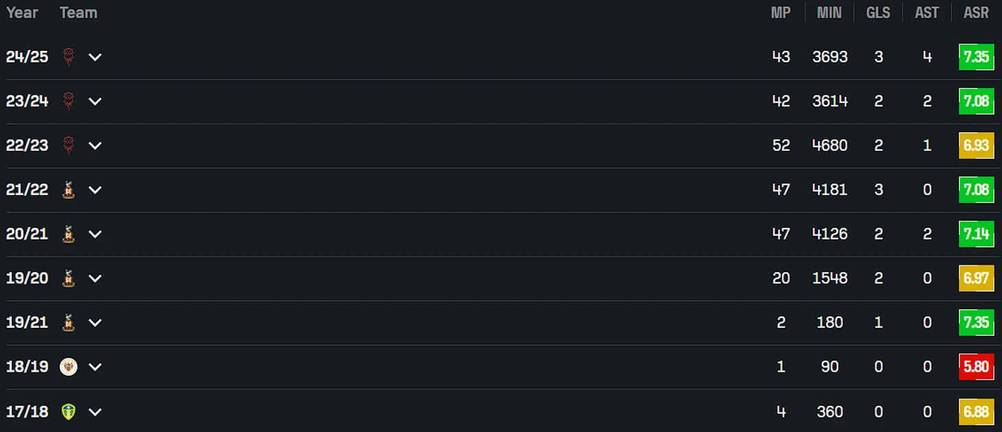 Наконец в этом списке появляется игрок из Чемпионшипа. Майкл Роуз этим летом освобождается из «Стока». Он пока еще на пороге своего 30-летия, серьезных травм у него в прошлом не замечено, поэтому шотландец запросто мог бы присоединиться к ротации Брауна, Хелика и Мура, выдавая по 1 000 – 1 500+ минут игрового времени на протяжении еще пары сезонов.