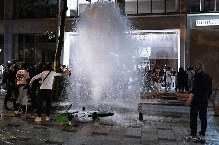 С этих эпизодов начались беспорядки, продолжавшиеся всю ночь. В итоге силовики для разгона толпы применили слезоточивый газ и водомет. По итогам бесчинств в столице задержано около 300 человек.