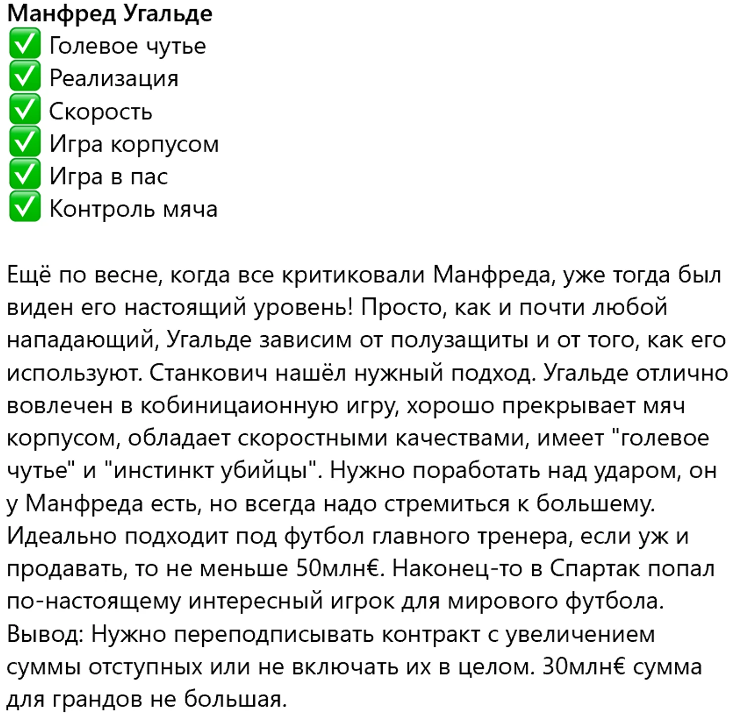 После обсуждения «Русского костяка» переходим к легионерам Спартака. Кто должен остаться и править баллом, а кому не место в народной команде? А помимо этого, порассуждаем, на какие позиции следует искать усиление. По умолчанию сделал также, как и в прошлой статье: сначала идёт «текущие мнение», а на скриншоте вы можете ознакомиться, что я думал об данном футболисте зимой.