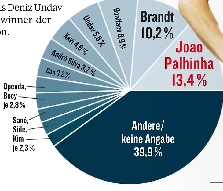 Самое большое разочарование сезона – Жоау Пальинья из «Баварии». Он набрал 13,4% голосов. На втором месте − Юлиан Брандт из «Дортмунда» (10,2%), а на третьем − Виктор Бонифасе из «Байера» (6,9%). Здесь стоит отметить, что сразу 39,9% решили не голосовать в этой категории.