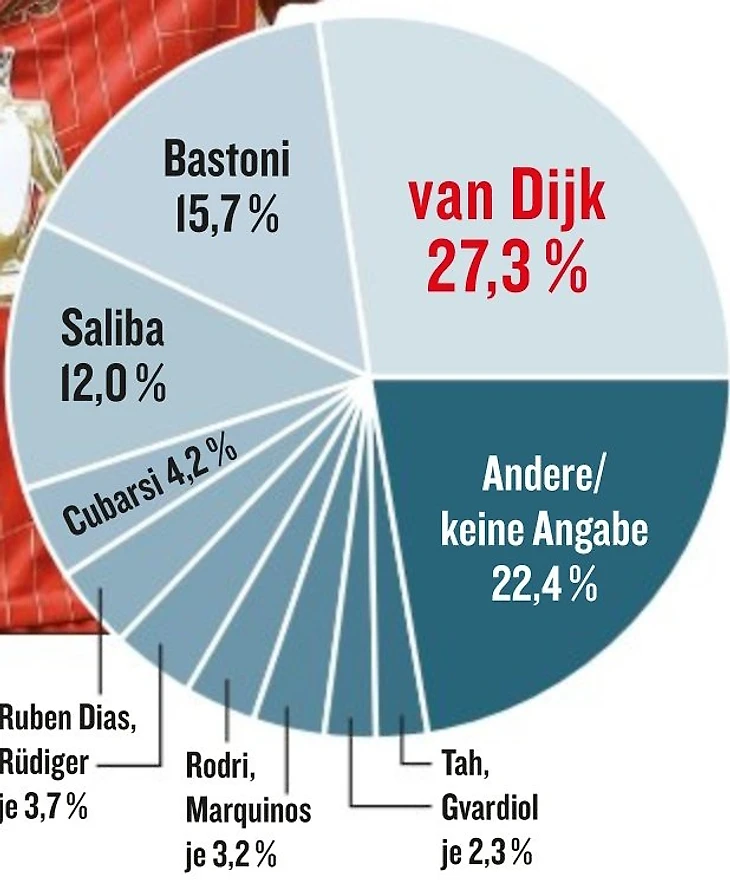 Лучший защитник Европы − Вирджил ван Дейк из «Ливерпуля» (27,3%). Он почти в два раза опередил Алессандро Бастони («Интер», 15,7%) и в три – Вильяма Салиба («Арсенал», 12%).