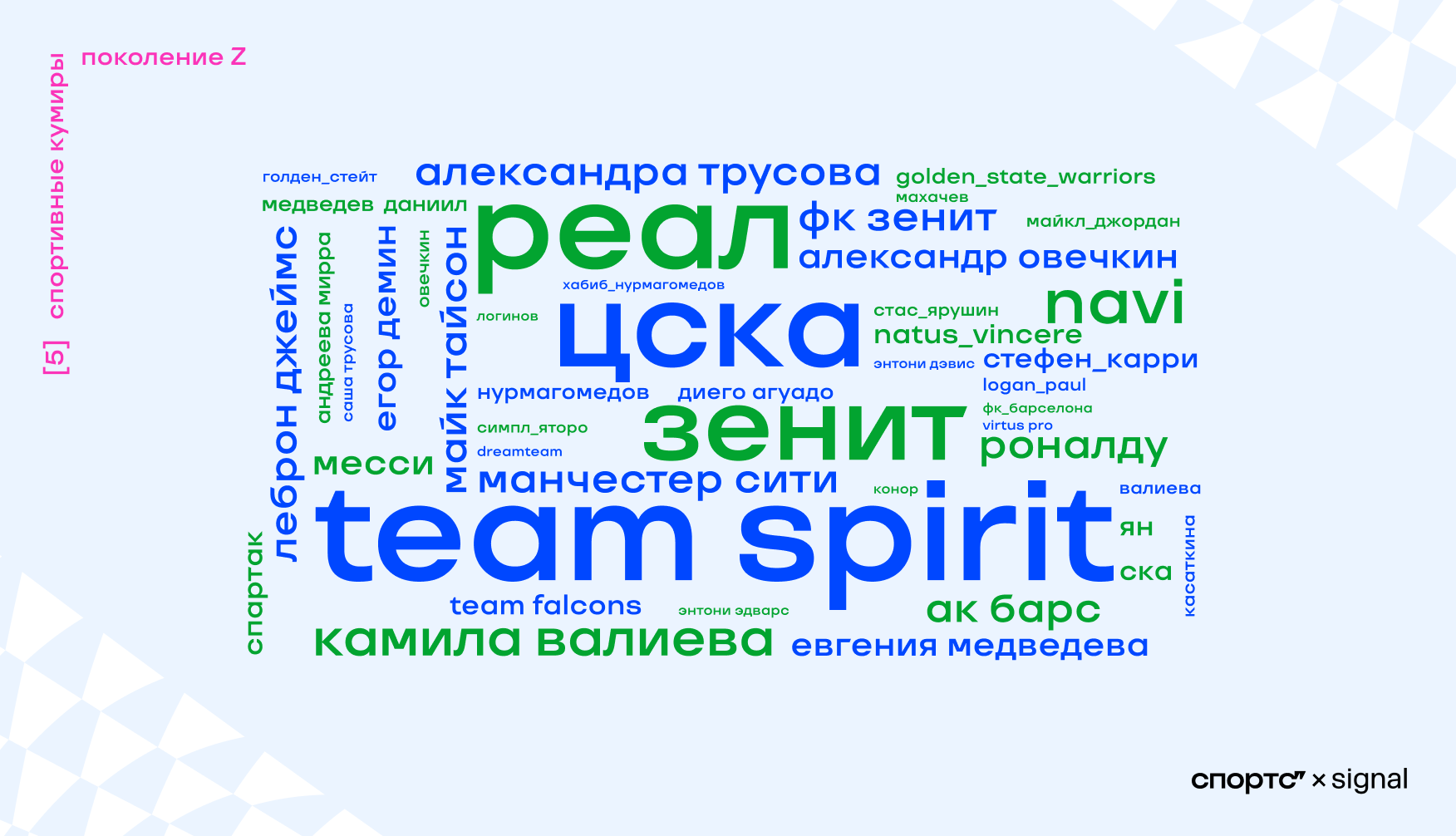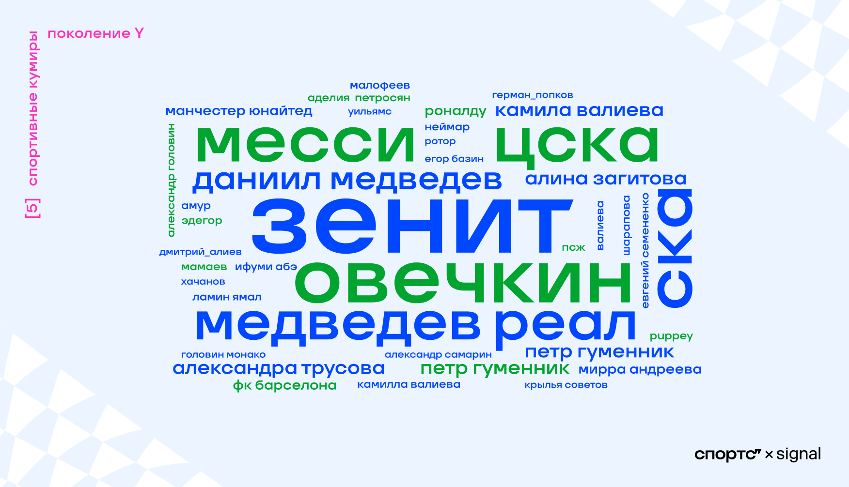 Миллениалы, в свою очередь, особенно привязаны к героям, чья карьера от взлета до пика и заката прошла на их глазах, а зумеры говорят о личных качествах и образах, которые спортсмены сформировали на страницах в соцсетях. Часто среди кумиров они выделяют не состоявшихся звезд, а молодых перспективных спортсменов, еще не известных широкой аудитории. Их вдохновляющий пример можно взять за ориентир для себя.