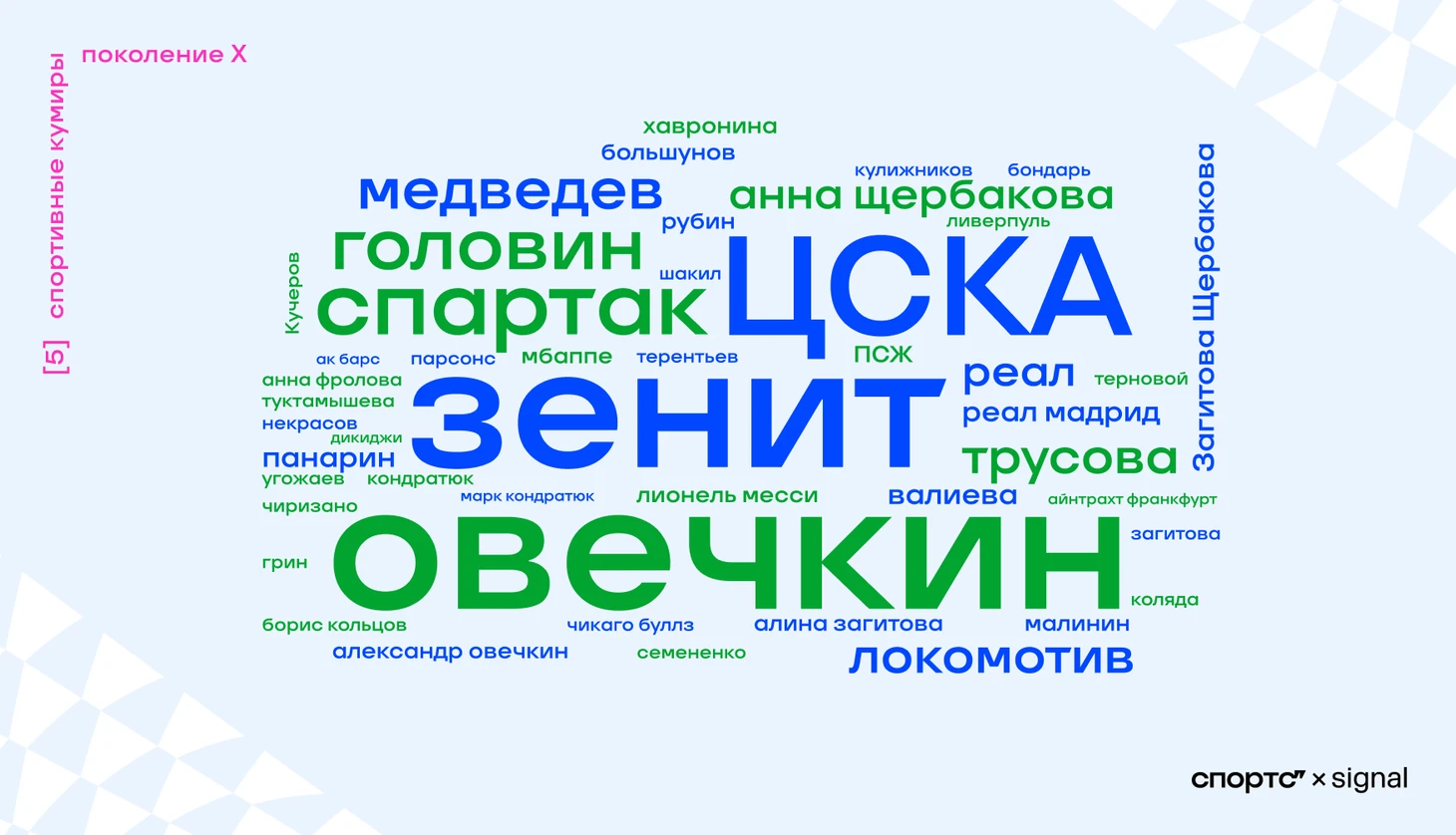 Больше всего удивило наличие (и размер надписи) по Егору Демину в z-поколении, показатель получается сравним с Овечкиным, больше Спартака и Барселоны. Это подрывает доверие к исследованию, сколько процентов у нас населения вообще знают, кто такой Демин?