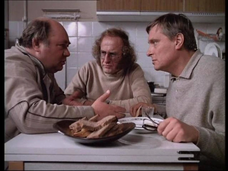 Ну а за основу стикера взяли сцену с участием профессора, главного героя Бузыкина и его соседа Василия Игнатьевича Харитонова, который постоянно врывался с предложением выпить.