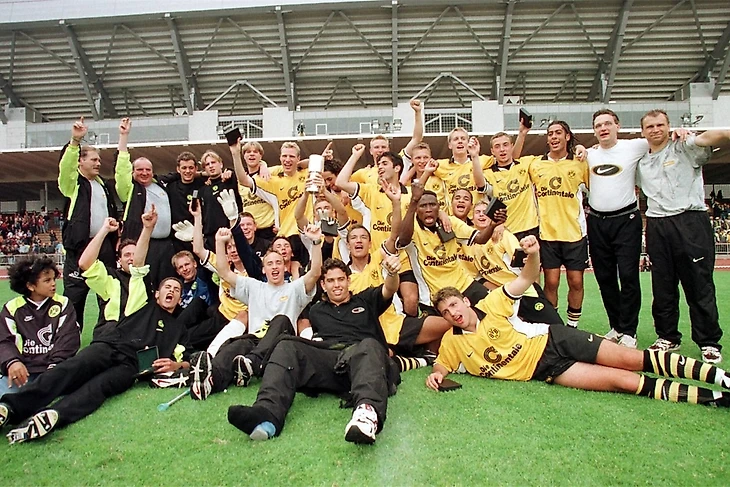 Да, если мы вспомним 1995 год, то именно благодаря молодым игрокам Ларсу Риккену и Ибрагиму Танко «Боруссия» стала чемпионом Германии. Оттмар Хитцфельд даже поблагодарил меня тогда и сказал: «Эдди, еще раз большое спасибо за Ларса и Ибрагима. Это и Ваш успех тоже». Я тренировал обоих мальчиков и стал с ними чемпионами Германии среди команд до 19 лет. А затем и косвенно в составе профессионалов.