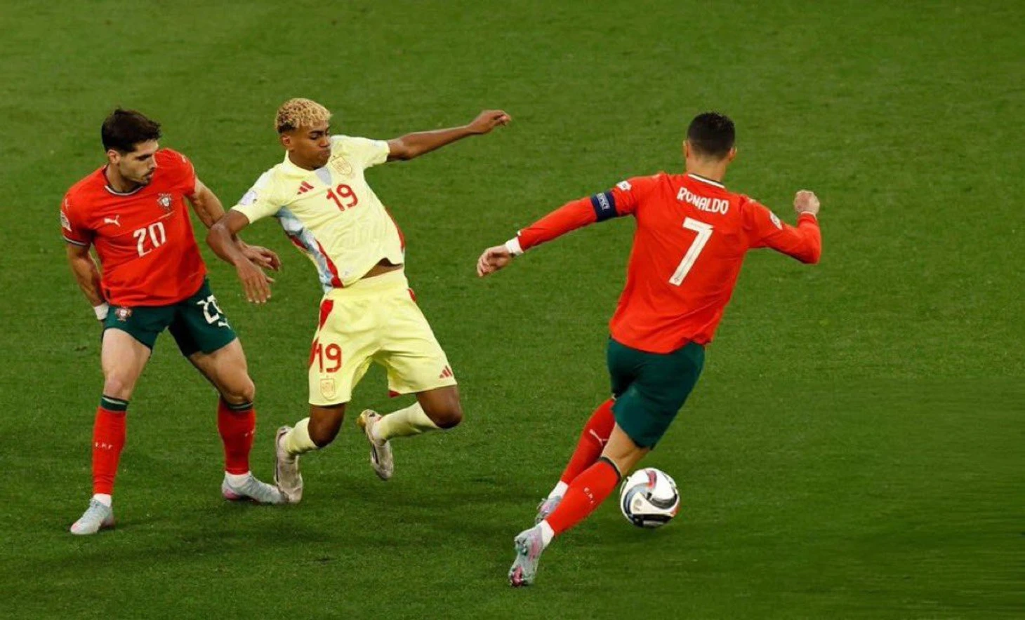 В итоге португальцам помог вечный Криштиану Роналду. Ямаль на фланге упустил рывок Мендеша, а Оскар Мингеса убежал в центр и не смог подстраховать вингера. Прострел Нуну, и после рикошета мяч вывалился на Роналду. Криш подождал, пока Кукурелья махнет шевелюрой мимо мяча, и сравнял ударом в упор.