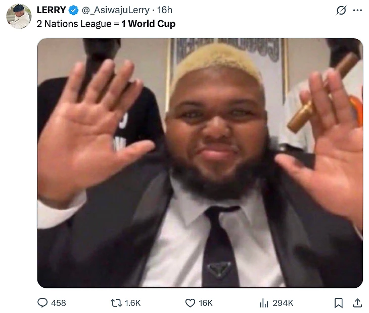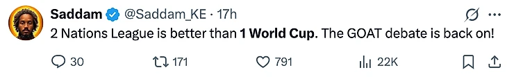 Лига наций😆, это даже не чемпионство. Это просто второсортный турнир который не дает ни звезды на футболку сборной, ни статуса Чемпиона, ни величия, ничего.