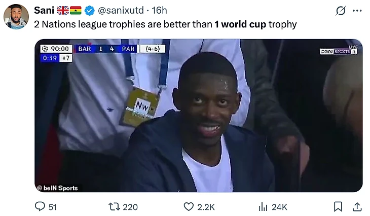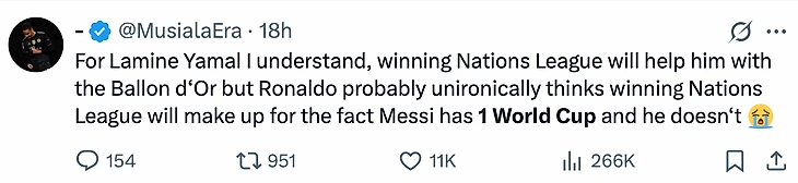 💭 «Что касается Ламина Ямаля: Я понимаю, что победа в Лиге наций помогла бы ему с «Золотым мячом», но Роналду, вероятно, без иронии думает, что этот трофей компенсирует тот факт, что у Месси есть Кубок мира».
