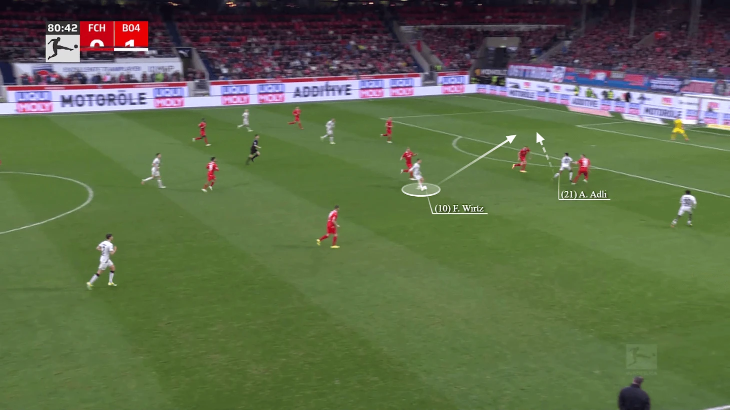 Джокер Виртца в таких ситуациях – его умение моментально ускоряться после получения мяча, что дает защитникам соперника ограниченное время для реакции.