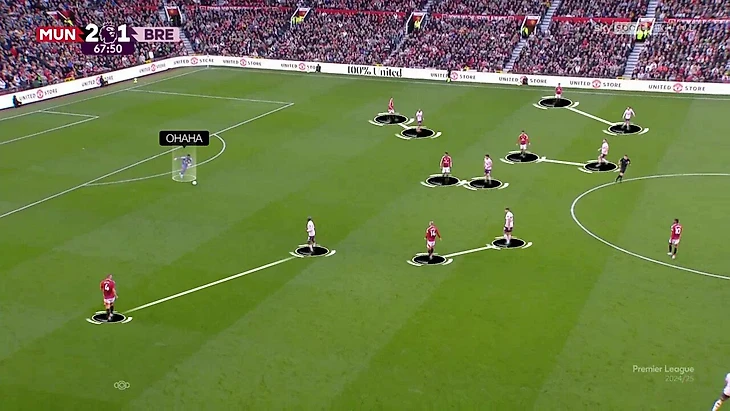 Модный прием в последние годы – опускания опорника. В их случае – не на фланг, а в центр защиты. С разной частотой использовали «Астон Вилла», «Ноттингем», «Борнмут», «Брентфорд», «Вест Хэм» и даже «Тоттенхэм». У многих работало, но с этим механизмом связан чуть ли не главный тактический фэйл года – в исполнении Хулена Лопетеги. Речь про дуэль, которую испанец организовал для Эдсона Альвареса.