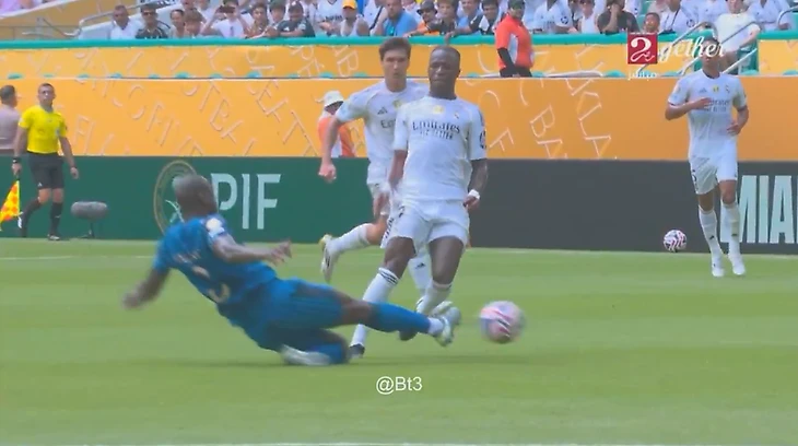 Винисиус бежал с мячом к воротам саудовского клуба, когда под него подкатился Калиду Кулибали. Судья Факундо Тельо находился в идеальной позиции и сразу же достал желтую карточку. Не для сенегальца, для бразильца.