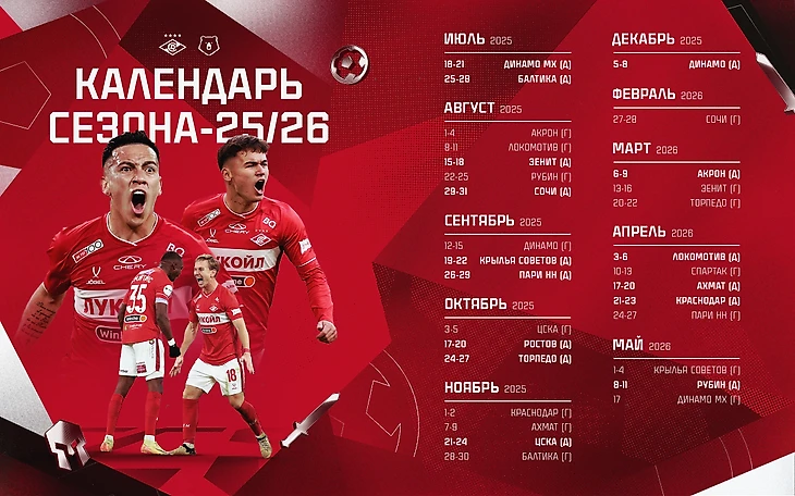 Опубликован календарь предстоящего сезона чемпионата России. Приводим ориентировочные даты матчей с участием красно-белых.