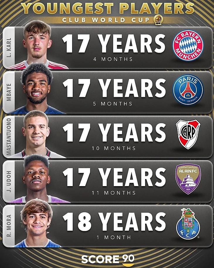 А звание главного юнца турнира уходит Леннарту Карлу из «Баварии», ему перед стартом КЧМ исполнилось 17 лет и 4 месяца. Молодой полузащитник успел провести 45 минут в матче против «Окленда», но результативными действиями не отметился. Ибраим Мбайе занял второе место, он старше Карла всего на месяц.